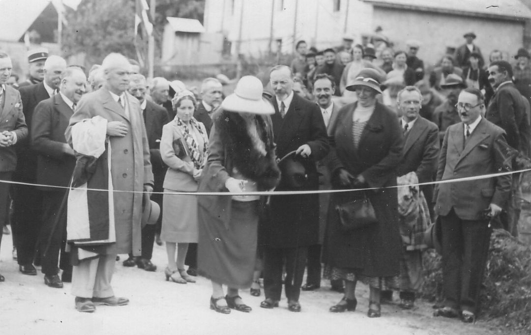 Inauguration de la "route du Salève" (1932) : Photographie Inauguration de la "route du Salève" (entre l'Abergement et La Croisette) financée par le couple DiINA-SHILLITO et exécutée par le Génie de Grenoble. Au premier plan, de gauche à droite :Il y eut une seconde inauguration plus officielle le 15 août 1937, sans Mary SHILLITO et Fernand DAVID, mais avec l'ex président du Conseil Camille CHAUTEMPS (1885-1963), le ministre Henri QUEUILLE (1884-1970), Joseph PINGET, le Dr Henri BOUCHET, conseiller général, qui rajouta une strophe à son poème "La route du Salève" probablement écrit en 1931.