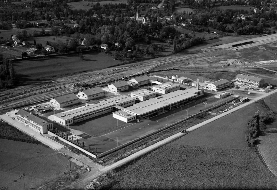 Il est prévu de déménager les abattoirs municipaux de la Jonction à la Praille. En décembre 1938, une exposition présente les trente-deux projets reçus par le jury du concours. La photo, postérieure, montre les nouvelles installations dans un quartier en devenir.