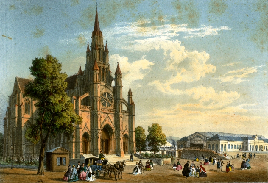 Le 4 octobre 1857, l’église Notre-Dame est dédicacée, offrant un nouvel espace de culte aux catholiques, jusque-là à l’étroit dans la seule église de Saint-Germain. Pour le curé Gaspard Mermillod, cette construction est aussi une forme de reconquête de la Genève protestante.