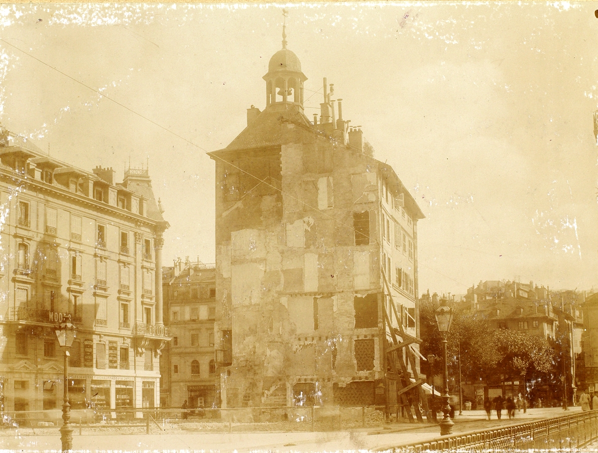 Le 21 décembre 1897, les citoyens de la Ville acceptent la rénovation de la Tour de l’ÃŽle, vestige médiéval menacé de destruction. Les défenseurs du patrimoine accusent les référendaires de vouloir faire ressembler Genève à Chicago