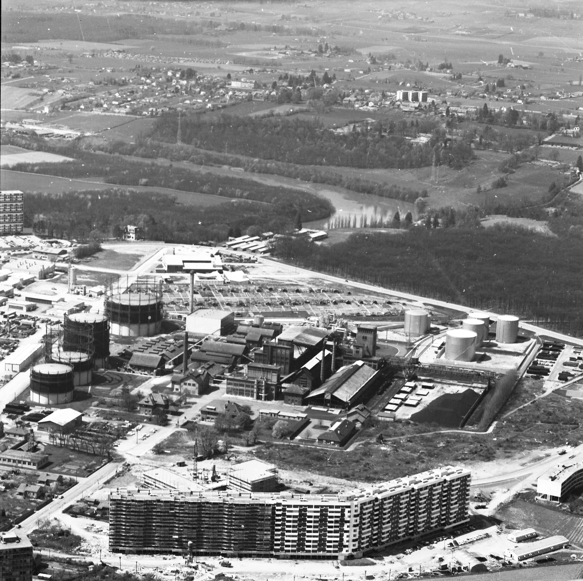 Vue aérienne de l'usine à gaz et du quartier des Libellules, prise par la photographe Gertrude Trepper.